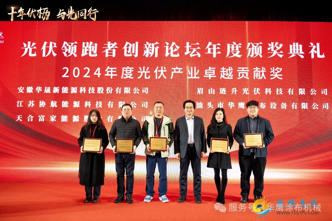 華鷹涂布設備榮獲2024年度光伏產業卓越貢獻和創新技術獎